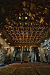- القاعة السابعة: هي قاعة صغيرة زخرف سقفها على شكل سجادة، وتعرض مجموعة أنسجة السيرما وسجادة صممت على شكل ليرة تركية.