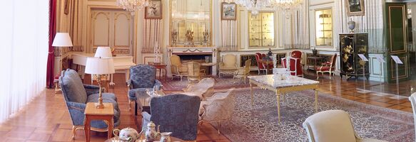 The Shah and Empress left basically everything behind when they left Iran in January 1979. All of the peripheral buildings of the Saheb Qaranie, with the exception of the Ahmad Shahi Pavilion, were demolished, and the present-day structures were built to the north of the Saheb Qaranie. The Ahmad Shahi Pavilion was then used as an exhibition centre for presents from world leaders to the Iranian imperial monarchs.[1]
