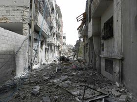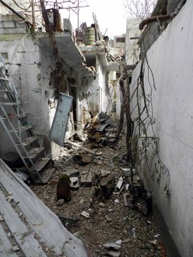 آثار الدمار في حي باب الدريب بعد قصفه من الجيش النظامي.