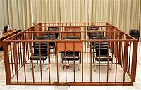جلسة محاكمة صدام حسين برئاسة القاضي رزكار أمين. |
