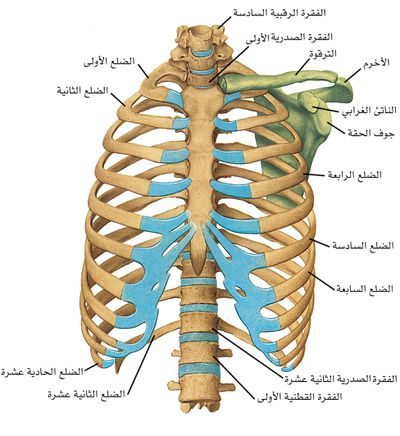 القفص الصدريThorax جزء من الهيكل العظمي البشري يتكون الهيكل العظمى عند الانسان من الهيكل المحورى والهيكل الطرفى حيث نجد ان الهيكل المحورى يتكون من العمود الفقرى والقفص الصدرى والجمجمة . القفص الصدرى عند الانسان يتكون:
