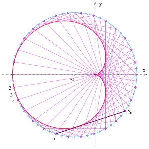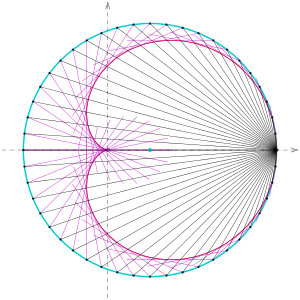 Cardioid as caustic of a circle with light source (right) on the perimeter