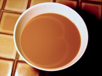 Certain caustics can take the shape of cardioids. The catacaustic of a circle with respect to a point on the circumference is a cardioid. Also, the catacaustic of a cone with respect to rays parallel to a generating line is a surface whose cross section is a cardioid. This can be seen, as in the photograph to the right, in a conical cup partially filled with liquid when a light is shining from a distance and at an angle equal to the angle of the cone.[6] The shape of the curve at the bottom of a cylindrical cup is half of a nephroid, which looks quite similar.