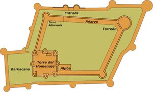 بنيت القلعة في تاريخ غير معلوم، على الرغم أنه لا يتعدى القرن الثاني عشر، حيث أشارت مصادر عربية إلى بناؤها في عام 1172. وأشيع أنه تم بناء القلعة على أنقاض ڤيلا رومانية، لكن لم يتم العثور على أي أدلة تدعم هذا الطرح.