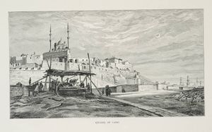 ![]() منظر للقلعة، وبوابة باب العزب العثمانية، ومسجد محمد علي من القرن التاسع عشر. | |
