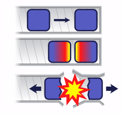 Middle: By increasing the mass of the sphere to a critical mass, the reaction can become self-sustaining.