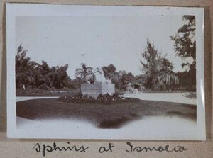 تمثال اثري ل سفنكس ابو الهول في حدائق الاسماعيلية 1914 اثناء حفر ترعة الاسماعيلية الواصلة من القاهرة حتي مدن القنال