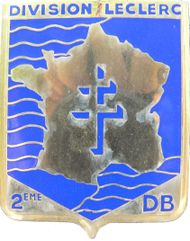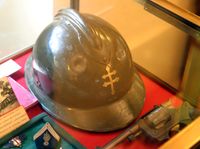 Free French Forces Adrian helmet with the Cross of Lorraine replacing the 1939-1940 French Republic "RF" emblem.