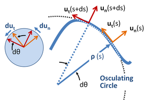 Looking at the image above, one might wonder whether adequate account has been taken of the difference in curvature between ρ(s) and ρ(s + ds) in computing the arc length as ds = ρ(s)dθ. Reassurance on this point can be found using a more formal approach outlined below. This approach also makes connection with the article on curvature.