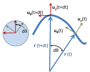 - ^ Notice that this local coordinate system is not autonomous; for example, its rotation in time is dictated by the trajectory traced by the particle. The radial vector r(t) does not represent the radius of curvature of the path.