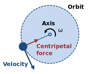Centripetal force (من Latin centrum، وتعني "center", و petere، وتعني "to seek"[1]) is the force that makes a body follow a curved path. The direction of the centripetal force is always orthogonal to the motion of the body and towards the fixed point of the instantaneous center of curvature of the path. Isaac Newton coined the term,[2] describing it as "a force by which bodies are drawn or impelled, or in any way tend, towards a point as to a centre".[3] In Newtonian mechanics, gravity provides the centripetal force causing astronomical orbits.
