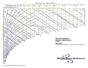 - Psychrometric Chart - Detailed psychrometric chart including curves for enthalpy, air mass, and water mass.