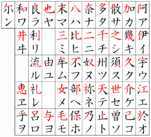 - File:Beschrijving van Japan - ABC (cropped).jpg for the kana as described by Engelbert Kaempfer in 1727
