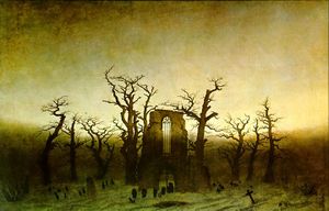 كاسپر ديڤيد فريدريش (5 سبتمبر, 1774 - 7 مايو, 1840) هو رسام مناظر طبيعية, الحركة الرومانسية الألمانية في القرن التاسع عشر, ويعتبر فريدريش بصفة عامة من أهم رسامي الحركة.[2] وقد كانت اولى إهتماماته الفنية التأمل في الطبيعة, and his often symbolic and anti-classical work seeks to convey a subjective, emotional response to the natural world. Friedrich's work characteristically sets the human element in diminished perspective amid expansive landscapes, reducing the figures to a scale that, according to the art historian Christopher John Murray, directs "the viewer's gaze towards their metaphysical dimension".[3]