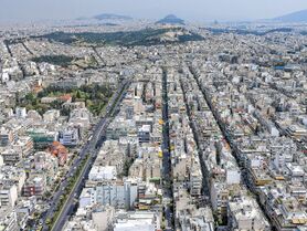 Aerial view of the city with the Acropolis of Athens in the background Church of Metamorphosis Sotiros Canal of Stavros Niarchos Park Marina Delta | |