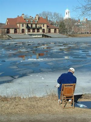 منظر من بوسطن لبيت قوارب ولد التابع لجامعة هارڤرد وكمبردج. نهر تشارلز يظهر في المقدمة.
