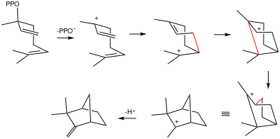 Camphene is biosynthesized from linalyl pyrophosphate via a sequence of carbocationic intermediates.[2]
