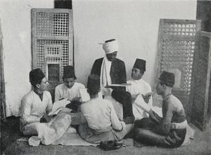 علماء وطلاب في كتاب عثماني.