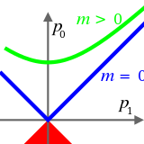 Possible 4-momenta of particles. One has zero invariant mass, the other is massive