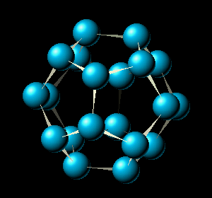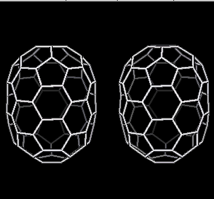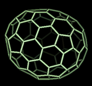 أما طبقة الأشكال السداسية- في شظايا الجرافيت - فتميل لجعل السطح مسطحا، وعندما تختلط الخماسيات والسداسيات، فإن الخماسيات تبتعد عن بعضها البعض لأن وجودها متجاورة يجعلها غير مستقرة، ومن ثم يلتف السطح إلى أعلى حتى ينغلق تماما، حيث تفصل السداسيات بين الخماسيات وكذلك بين بعضها البعض. وهكذا يبدو جزيء ك- 60 مثل كرة القدم المجوفة، وهو الجزيء الوحيد لأي عنصر منفرد يتخذ شكلا كرويا.