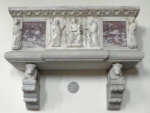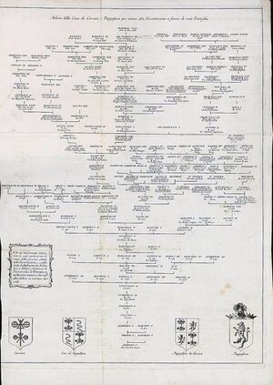 Coming from Carrara Santo Stefano, near Padua, the family had their origin in a certain Gamberto/Gumberto, of Lombard origin, to judge from his name and that of his son Luitolfo, founder of the abbey of Carrara in 1027; Gumberto was signore of castrum Carrariae, the Castello of Carrara San Giorgio.[6] Faithful to the emperors generation after generation, after becoming lords of Pernumia, in 1338 they ousted the Veronese della Scala from Padua and became the lords of that city. In 1388 a coalition of Milanese and Venetians forced Francesco il Vecchio to abdicate in favor of his son. The Venetians annexed Padua as Venetian territory in 1405. The elder Cararrese line was extinguished with the murders of Francesco Novello da Carrara and all his sons but Marsilio and bishop Stefano in a Venetian prison in 1406; Marsilio died soon after, and Stefano fled to Rome, where he lived until 1448; all Paduan bishops to the end of the Venetian Republic (1797), with two exceptions, were Venetian nobles.[7] The Baptistery at Padua, which was under Carrarese patronage and served as their mortuary chapels, reverted to the bishop and the cathedral chapter; its Carrarese tombs were removed when the floor level was raised.[8]