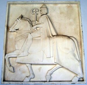 The widow of late King Zvonimir, Helen, tried to keep her power in Croatia during the succession crisis.[12] Some Croatian nobles around Helen, possibly the Gusić family[13] and/or Viniha from Lapčan family,[12] contesting the succession after the death of Zvonimir, asked King Ladislaus I to help Helen and offered him the Croatian throne, which was seen as rightfully his by inheritance rights. According to some sources, several Dalmatian cities also asked King Ladislaus for assistance, and Petar Gusić with Petar de genere Cacautonem presented themselves as "White Croats" (Creates Albi), on his court.[13][14] Thus the campaign launched by Ladislaus was not purely a foreign aggression[15] nor did he appear on the Croatian throne as a conqueror, but rather as a successor by hereditary rights.[16] In 1091 Ladislaus crossed the Drava river and conquered the entire province of Slavonia without encountering opposition, but his campaign was halted near the Iron Mountains (Mount Gvozd).[17] Since the Croatian nobles were divided, Ladislaus had success in his campaign, yet he was not able to establish his control over entire Croatia, although the exact extent of his conquest is not known.[13][15] At this time the Kingdom of Hungary was attacked by the Cumans, who were likely sent by Byzantium, so Ladislaus was forced to retreat from his campaign in Croatia.[13] Ladislaus appointed his nephew Prince Álmos to administer the controlled area of Croatia, established the Diocese of Zagreb as a symbol of his new authority and went back to Hungary. In the midst of the war, Petar Snačić was elected king by Croatian feudal lords in 1093. Petar's seat of power was based in Knin. His rule was marked by a struggle for control of the country with Álmos, who was not able to establish his rule and was forced to withdraw to Hungary in 1095.[18]