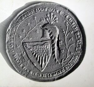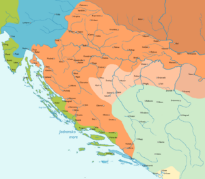 Paul issued his own money and was for all practical purposes an independent ruler. In 1311 Paul triggered a successful rebellion in Zadar against Venetian rule. War with Venice continued after Paul's death on 1 May 1312, who was succeeded by his son Mladen II. With Paul's death began a gradual decline of the Bribir Princes. Venice eventually restored their rule in Zadar in 1313.[71] In 1322 another civil war in Croatia started, culminating in the Battle of Bliska when Mladen II and his allies were defeated by a coalition of Croatian noblemen, including his brother Paul II, and coastal towns under the command of John Babonić, the Ban of Slavonia. A council in Knin was convened by the King where John Babonić was named Ban of Croatia and Dalmatia, ending the hereditary banship of the Šubić family. Their holdings were reduced and split between Mladen's brothers. Paul II held Bribir and Ostrovica, while George II held Klis, Skradin and Omiš.[73] After the decline of the Šubić family, Ivan Nelipić had risen to become the dominant figure in Croatia. He seized the royal city of Knin, which led to the removal of John Babonić from his banship and the appointment of Nicholas Felsőlendvai and later Mikcs Ákos, whose army was defeated in 1326 by Ivan Nelipić. Thus all of Croatia from Lika and Krbava to the Cetina River was in fact outside the king's authority. Nelipić had tense relations with the Šubići and had frequent conflicts with them. During these conflicts Venice took control over Split in 1327 and Nin in 1329, gaining most of the coast from Zrmanja River to the mouth of the Cetina. At the same time, Stephen II Kotromanić, Ban of Bosnia, annexed the territory between Cetina and Neretva, as well as Imotski, Duvno, Livno i Glamoč. Over the remainder of Croatia Ivan Nelipić ruled independently from Knin until his death in 1344.[73][74] Following that Louis I restored royal power in Croatia and pacified the country by the end of 1345. Nicholas Hahót was the first appointed royal official in decades, who styled himself Ban of Slavonia, Croatia and Dalmatia, merging the two positions and extending his influence to the Croatian territories as well to represent the royal authority.[75]