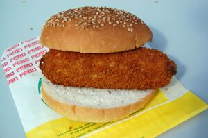 A potato-filled croquette called aloo tikki,[13] which originated in the Indian subcontinent, is very popular in Northern India and is usually served with a stew. They are mostly eaten as snacks at home and are also popularly sold by roadside vendors. In West Bengal, there are two popular types of croquettes called chop and cutlet. Vegetable chop is prepared using a medley of mashed vegetables like boiled beetroot, carrot, and green peas, which is held together by potato, then breaded and deep fried. A cutlet is like a chop, but skips the potato binding on its inside. A mutton cutlet is made of minced goat meat mixed with spices that is breaded and deep-fried. McDonald's in India serves a fast-food variation of aloo tikki inside a hamburger bun. Meat croquettes called kebabs are made with minced mutton. Lightly spiced beef croquettes are a popular snack and appetiser among the Christian communities in Goa and Kerala.[14]