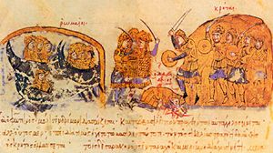 A Byzantine attempt to take back Crete ca. 828, as depicted by Ioannes Scylitzes (see Skylitzes Chronicle)