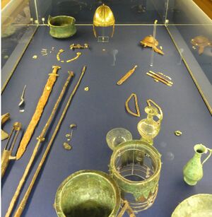 Frankish grave, c. 500 AD, with golden Spangenhelm in Gellep-Stratum