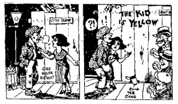 Cartooned: Bow as "Orchid McGonigle" in Grit, having a hard time keeping her boy-friend "Kid Hart" (Glenn Hunter) on track.[2]