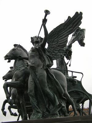 In war the trumpet historically had a harsh sound, often described as, "like the braying of an ass."[3][4] As technology improved the ability of trumpets to take pressure and reach more notes and higher notes, that higher-pitched sound became the focus of the term clarion.[5] By the 14th century, it was described as high-pitched, shrill, or clear sounding.[6]
