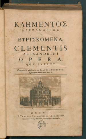- Clement of Alexandria — Loeb Classical Library, Harvard University Press