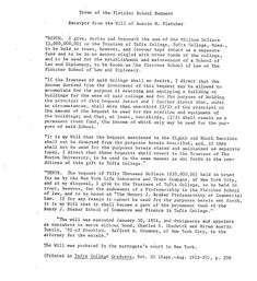 The Fletcher School of Law and Diplomacy was founded in 1933 with the bequest of Austin Barclay Fletcher, who left over $3 million to Tufts University upon his death in 1923. A third of these funds were dedicated “for the establishment and maintenance of a School of Law and Diplomacy, to be known as The Fletcher School of Law or The Fletcher School of Law and Diplomacy." Fletcher envisioned "a school to prepare people for diplomatic service and to teach such matters as come within the scope of foreign relations [which] embraces within it as a fundamental and thorough knowledge of the principles of international law upon which diplomacy is founded, although the profession of a diplomat carries with it also a knowledge of many things of a geographic and economic nature which affect relations between nations."[5]