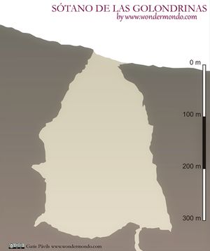 كهف السنونو، Cave of Swallows، (إسپانية: Sótano de las Golondrinas)، هو كهف عمودي في بلدية أكويسمون، سان لويس پوتوسي، المكسيك. يصل عرض فتحته إلى 49 * 42 متر،[2] وهو مفتوح بمستوى الأرض من جميع الجهات، ويتسع إلى غرفة أبعادها 303 م * 135 م.[2] قاع الكهف يبعد 333 متر بالسقوط الحر من أوطى جانب للفتحة، وبانخفاض 370 متر من أعلى جانب،[2] مما يجعله أعمق كهف عمودي في العالم، وثاني أعمق حفرة في المكسيك وربما ترتيبها الحادي عشر في العالم.[3] ولتخيل عمق الكهف يكفي أن نعرف أن ناطحة السحاب مبنى كرايسلر في مدينة نيويورك يمكن بسهولة أن تغطس بالكامل داخل هذا الكهف.