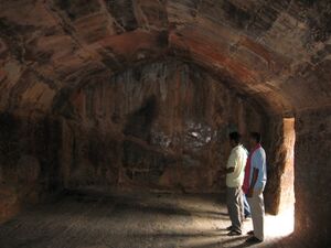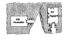 - Vapiyaka Cave, also called "Well Cave" from the meaning of its name . It consists of a single rectangular room of dimensions 5.10x3.43m. This cave was also dedicated to the Ajivikas sect by Dasharatha, with an inscription equivalent to that of the cave of Gopika. This cave also has a beautiful vaulted hall, entirely made of perfectly polished granite. It has an inscription identical to its neighbor, except for the name of the cave, as well as a number of short inscriptions of the Gupta era.