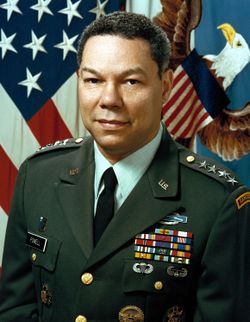 كولن لوثر پاول (و. 5 أبريل 1937 - ت. 18 أكتوبر 2021 ) جنرال وسياسي أمريكي ولد في نيويورك في عائلة مهاجرة من أصل جمايكي. تولى وزارة الخارجية الأمريكية من 20 يناير 2001 حتى 26 يناير 2005 في الفترة الرئاسية الأولى من عهد الرئيس جورج دبليو بوش. وكان قبل ذلك قد وصل إلى رئاسة هيئة الأركان المشتركة الثانية عشر وذلك بالفترة من 1 أكتوبر 1989 حتى 20 سبتمبر 1993.