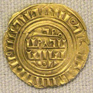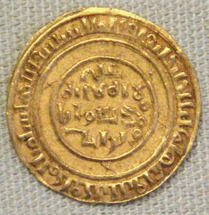 County of Tripoli coins: gold bezant with a text in Arabic (1270–1300), and Tripoli silver gros (1275–1287). المتحف البريطاني.