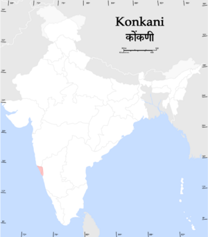 The Konkani people are an Indo-Aryan ethnolinguistic group native to the Konkan region of the Indian subcontinent who speak various dialects of the Konkani language. Konkani is the state language of Goa and also spoken by populations in Karnataka, Maharashtra, Damaon and Kerala.[بحاجة لمصدر] Other Konkani speakers are found in Gujarat state.[بحاجة لمصدر] A large percentage of Konkani people are bilingual.[3]
