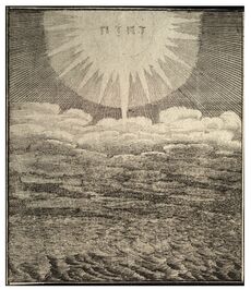 The notion of the temporal infinity was familiar to the Greek mind from remote antiquity in the religious conception of immortality.[16] The main object of the first efforts to explain the world remained the description of its growth, from a beginning. They believed that the world arose out from a primal unity, and that this substance was the permanent base of all its being. Anaximander claims that the origin is apeiron (the unlimited), a divine and perpetual substance less definite than the common elements (water, air, fire, and earth) as they were understood to the early Greek philosophers. Everything is generated from apeiron, and must return there according to necessity.[17] A conception of the nature of the world was that the earth below its surface stretches down indefinitely and has its roots on or above Tartarus, the lower part of the underworld.[18] In a phrase of Xenophanes, "The upper limit of the earth borders on air, near our feet. The lower limit reaches down to the "apeiron" (i.e. the unlimited)."[18] The sources and limits of the earth, the sea, the sky, Tartarus, and all things are located in a great windy-gap, which seems to be infinite, and is a later specification of "chaos".[18][19]