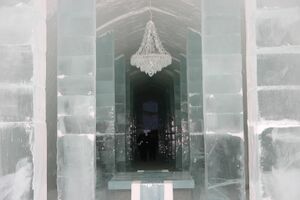The Kiruna Icehotel has been built in Jukkasjärvi each winter since 1990 and is a major tourist attraction.[27]