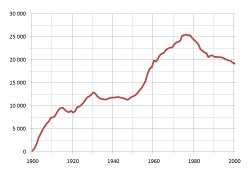 The Great Depression led to a 70% drop in ore production, a drop that would turn into a dramatic increase on the eve of World War II.[11]
