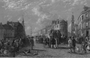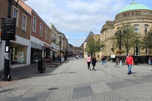 A comparatively modest settlement until the Industrial Revolution, Kilmarnock extended considerably from around 1800 onwards, requiring the opening of King Street, Portland Street, and Wellington Street.[17] Added later was John Finnie Street, which is regarded as "one of the finest Victorian planned streets in Scotland."[18] The Sandbed Street Bridge is the oldest known surviving bridge in the area.[19]