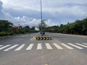 Highway No 33 traverses the province from west to east, running from Kampot town to Kampong Trach District then onward to the Vietnamese border. A lane of the No 33 named No 33A detours at the Kep White Horse Monument in Damnak Chang'aeur District, running along the coast before rejoining No 33, some 3 km (2 mi) to the east.