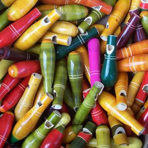 صفارات خشبية مطلية باللك مصنوعة في چانـّاپاتنا، كرناتكا، الهند