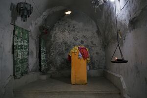 At least once in their lifetimes, Yazidis are expected to make a six-day pilgrimage to Lalish to visit the tomb of Şêx Adî and other sacred places.[4] These other sacred places are shrines dedicated to other holy beings. There are two sacred springs called Zamzam and the Kaniya Spî (White Spring).[5] Below Sheikh Adi's sanctuary, which also includes the tomb of Sheikh Hesen is situated a cave.[5]