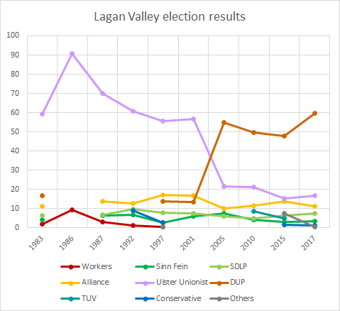 This seat saw the largest decrease in vote share for the DUP at the 2019 general election.[4]
