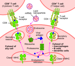 كما تتمتع الخلايا غير المناعية في الجسم بقابلية امتصاص لقاح الرنا المرسال، وتوليد استجابة مناعية مشابهة للخلايا المتغصنة المناعية.