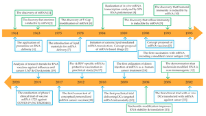 سجلت أول عملية تطعيم بجزيئات الحمض النووي الريبوري المرسال المغلف بجزيئات النانو الدهنية في العام 1989.