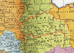 The Margraviate of Upper Lusatia was transferred by the Peace of Prague (1635) to the Electorate of Saxony. Two main routes connecting Warsaw and Dresden ran through the region in the 18th century and Kings Augustus II the Strong and Augustus III of Poland often traveled the routes.[5] Numerous Polish dignitaries also traveled through Upper Lusatia on several occasions, and some Polish nobles owned estates in Lusatia.[6] A distinct remnant of the region's ties to Poland are the 18th-century mileposts decorated with the coat of arms of the Polish–Lithuanian Commonwealth located in various towns in the region. Polish-Sorbian contacts increased in that period. With the Age of Enlightenment, the Sorbian national revival began and resistance to Germanization emerged.[7]